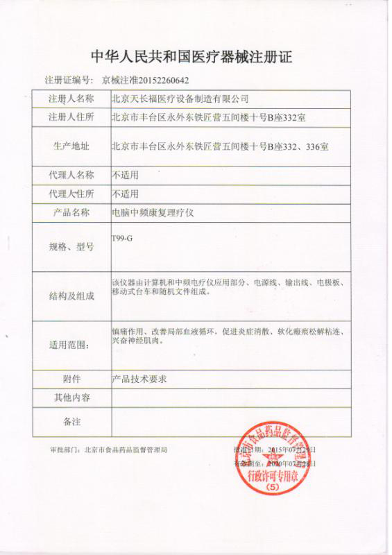 • 我公司的T99-H型中頻電療儀2019年-06月-20日